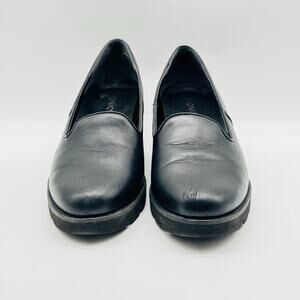 Vionic Shoes Womens 9 Black Leather Wedge Heels Slip On Comfort Orthotic Willa