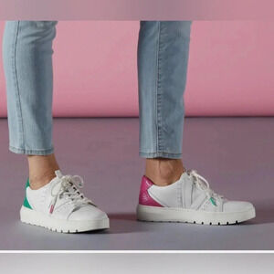 ! Vionic Simasa Abyss Women's Leather Sneaker White Pink Green Size 8.5