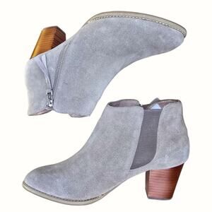 Vionic Size 10 Ankle Boots Suede Leather Heeled Bootie Taupe Sterling Side Zip
