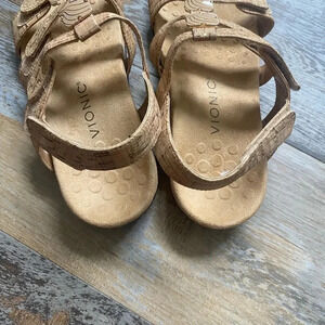 Vionic Size 7 Amber Gold Cork Adjustable Strap Walking Sandals Orthopedic Sling