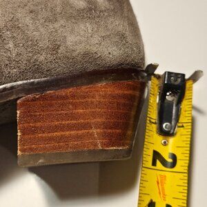 Vionic Size 7 Suede Ankle Boot 1.8" Heel Rubber Sole Side Zip Almond Closed Toe
