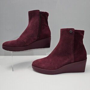 Vionic Skylar Ankle Bootie Womens 10 Port Wine Red Suede Stretch Wedge Heel