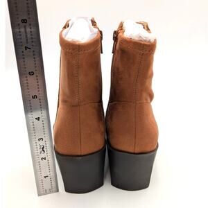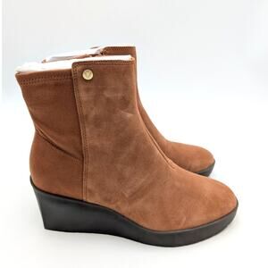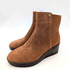 Vionic Skylar Ankle Wedge Booties Side Zip Women's Tan Suede Size US6.5 EU36.55