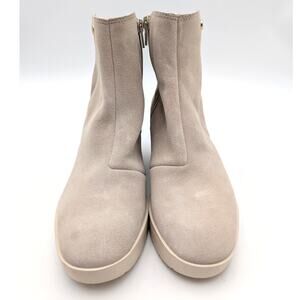 Vionic Skylar Ankle Wedge Boots Side Zip Women's Oatmeal Suede Size US5 EU35