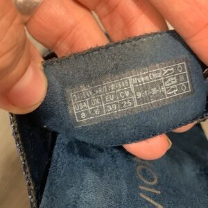 Vionic Skylar Navy Blue Embossed Leather Side Buckle Slide Sandals size 8
