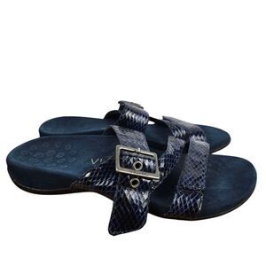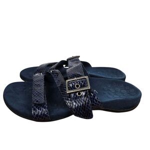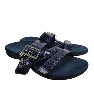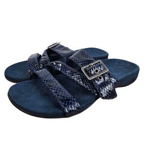 Vionic Skylar Navy Blue Snake Print Sandals Sz 6 Adjustable Three Strap TVW4946
