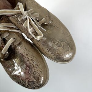 Vionic Sneakers Womens 7.5 Palermo Snake Print Gold Metallic Lace Up Comfort