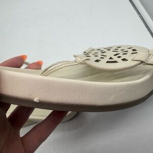 Vionic Solari Women's Toe-Post Sandals Cream White Leather Size 11