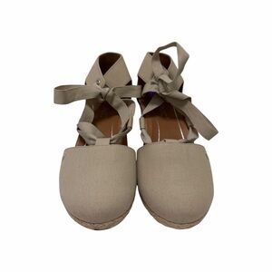 Vionic. Tan. Textile. Solid. Espadrilles. Enclosed Toes & Heels. Fabric Laces. Jute Wedges. Size 8.