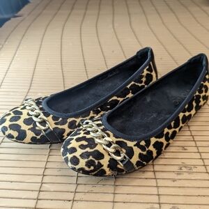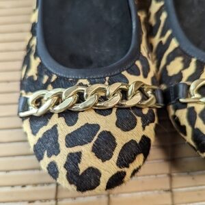Vionic Spark "Pera" Flats Gold Chain Leopard Calf Hair Orthopedic Designed women Sz 7