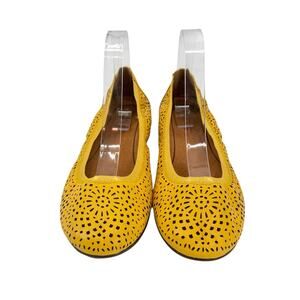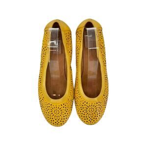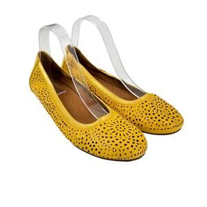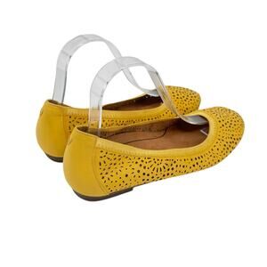 Vionic Spark Robyn Mustard Yellow Perforated Leather Comfort Flats Shoes