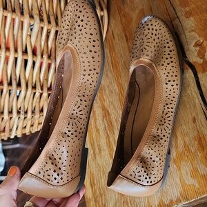Vionic Spark Women's Robyn Perforated Ballet Flat sz 6.5 Tan