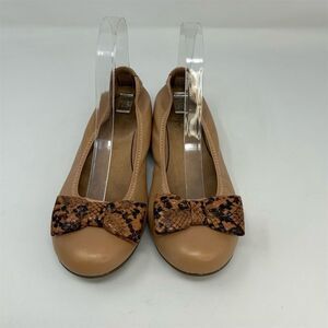 Vionic Spark Zelda Women's Slip On Ballet Flats Tan Camel Snake Print Size 8 Bow Toe