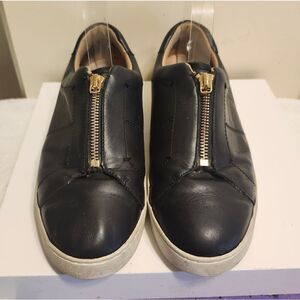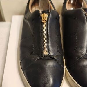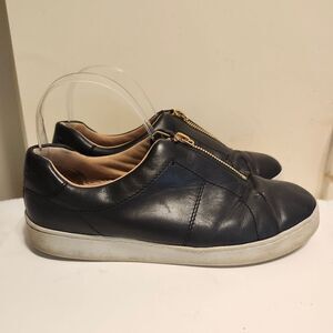 Vionic "Splendid Ellis" Black Leather Comfort Sneakers Zip Up Sz.7.5/37.5 $175