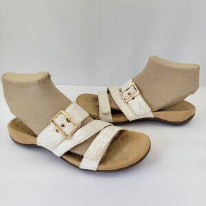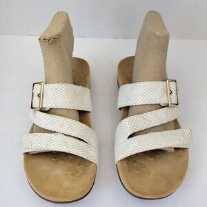 Vionic Strappy Slide Sandals With Gold Buckle White Size 7