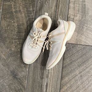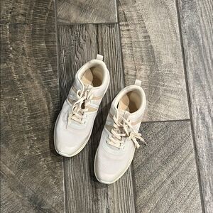 Vionic Trendy cream sneakers with lace-up design. Perfect for casual wear.