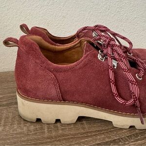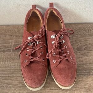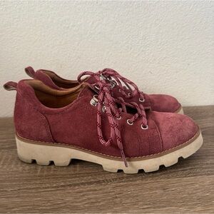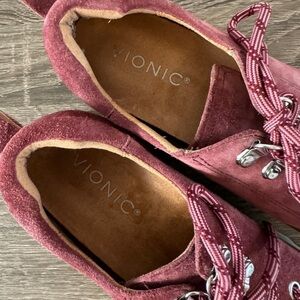 Super cute suede lace-up shoes from Vionic in a lovely purplish red color. Size 6. In great preowned condition; no visible flaws.