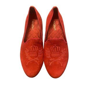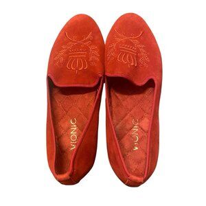 Vionic Sz 7.5 Romi Smoking Christmas Red Suede Embroidered Crest Classic Slip-On