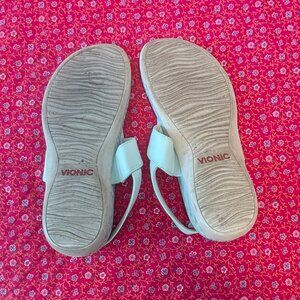Vionic Tala T Strap Thong Seafoam Green Snake Skin Print Sandals Boho Orthotic