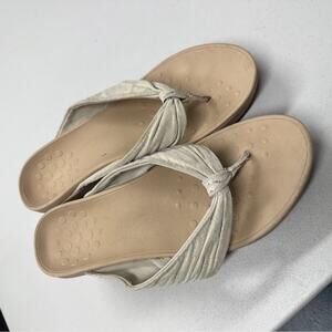 Vionic Tan Leather Flip Flop Wedge Sandals Womens 9 Casual Beachy Comfort Shoes