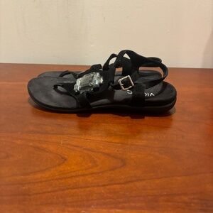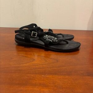 Vionic Tatiana Jeweled Sandals in black. Adjustable buckle closure. Suede upper. Women's size 7. Gently used with no flaws.