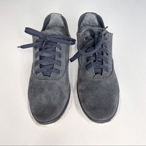 Vionic Taylor Suede Sneakers in Grey. Women's Size 7.5 Wide. 100% suede upper, lace-up, round toe, contoured cushioned footbed, orthotic trainer. Great pre-owned condition, minor signs of wear on the upper and outer sole, but overall in great shape with a lot of wear left.
