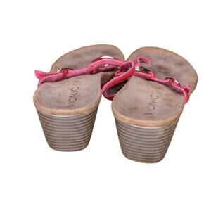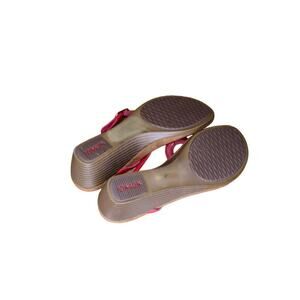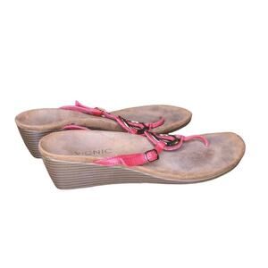 Vionic Thong Flip Flop Wedge Sandals Red Leather Gold Tone Medallion Size 10
