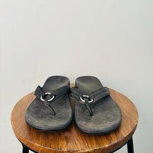 Vionic Tide Aloe Black Leather Thong Sandals Women’s Size 10