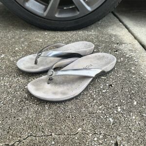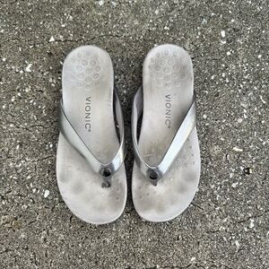 Vionic Tide Davina Thong Sandals Womens 8.5 Silver Gray Flip Flop Slip Ons