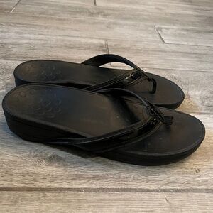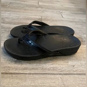Vionic Tide II toe poat black thong sandals, size 10 1/2