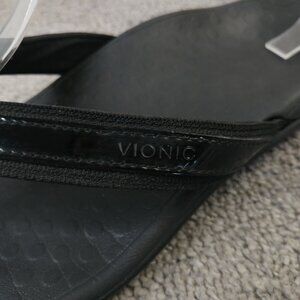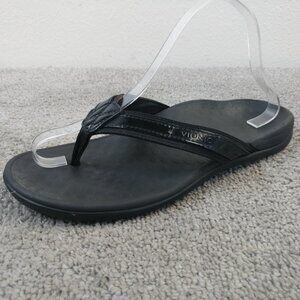 Vionic Tide Patent Leather Orthotic Sandals Womens Size 8.5 Flip Flop Shoes Black