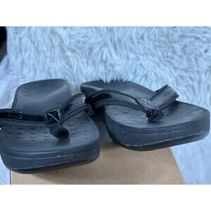 Vionic Tide Sport Women's Flip Flops Sandals Size 8 Black Leather Orthotic