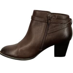 Vionic Upton Brown Leather Western 2.5" Block Heel Comfort Ankle Boot Women 9