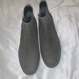 Vionic Uptown Sur Booties green nubuck dark khaki leather 6.5 women’s like new