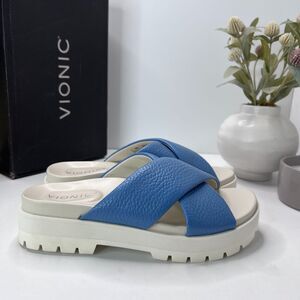 Vionic Vesta Slide Comfort Arch Support Sandal Blue Shadow H9684L2402 Women 7.5M