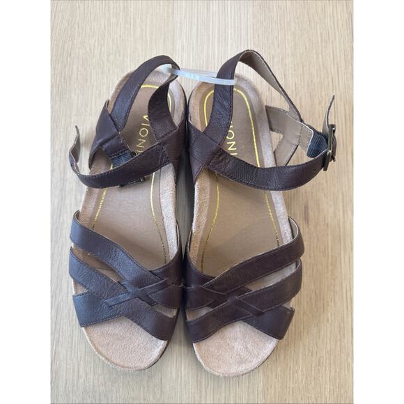 Vionic Violet Chocolate Brown Size 7 wedge sandals comfort shoes