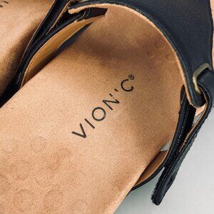 Vionic Wanda Flip Flop Sandals Womens Size US 10 Black Leather T Strap TVW5658