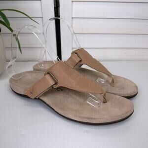Vionic Wanda Sandals Brown Leather Thong Flip Flop Slip On Comfort Shoe Size 9