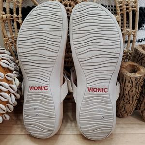 Vionic Wanda Sandals Leather Snake Adjustable Post Toe Bone Comfort Womens 9/41