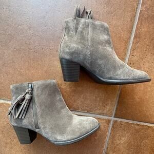Vionic Weather Resistant Grey Suede Mid-Heel Booties with Tassels size 6.5