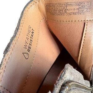 Vionic booties in good condition. There is some light scuffing and wear but they still look fresh and the insides are clean. Featuring side zips with tassels and mid rise heels, these weather resistant booties are perfect for transitional fall and spring weather!
