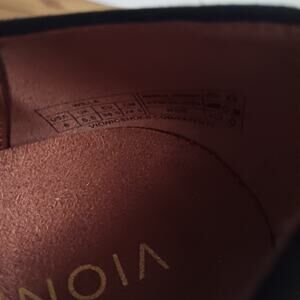 Shoes are in excellent condition except for a scuff on the inside right shoe and one on the back heel