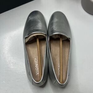 Vionic Willa II Leather Slip On Flat Silver Women's 7 M NWB Comfort Arch Support