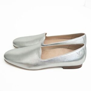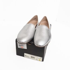 Sleek silver flats that blend comfort and style with a smooth leather upper, soft lining, and cushioned insole for easy wear. The slip-on design features light arch support and a sturdy outsole for lasting comfort from workdays to evenings out. Finished with a low ½-inch heel for a subtle lift.