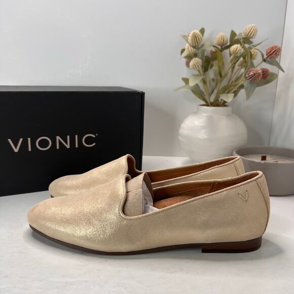 NWB Vionic Willa II Slip-on Leather Slip On Flat Metallic Gold