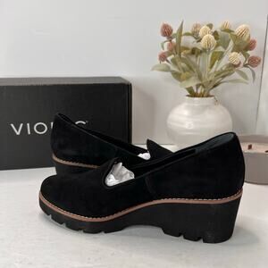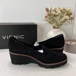 Vionic Willa Wedge Loafers Suede Slip On Black Women's 8.5 NWD Water Repellent