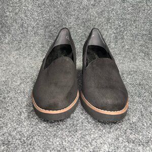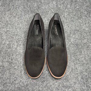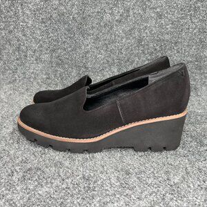 Vionic Willa Wedge Shoes Women's Size 7.5 Black Suede Leather Slip On Loafers