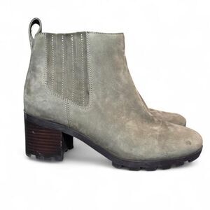 Vionic Wilma Women’s Size 9 Olive Green Suede Ankle Boots Side Zip Block Heel Comfort