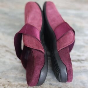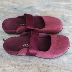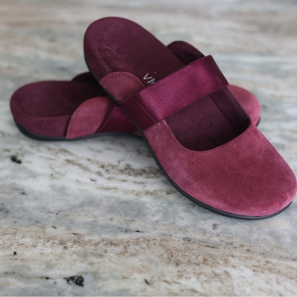 vionic laurel suede burgundy mules size 9, slip on comfort shoes arch support orthotic wine red flats, vionic comfort slip on suede clog style shoes womens size 9 travel casual workwear