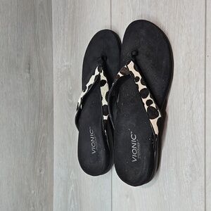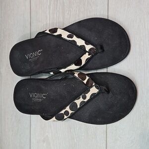 Vionic Women Selena w Orthaheel Thong Leather Hair Sandals Slide shoes sz 8